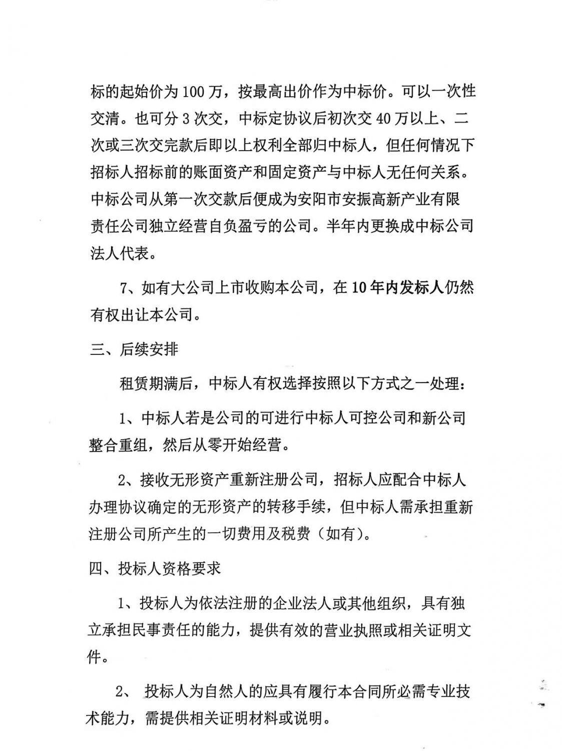 安陽市安振高新產(chǎn)業(yè)有限責任公司資產(chǎn)租賃及后續(xù)轉(zhuǎn)讓項目招標書