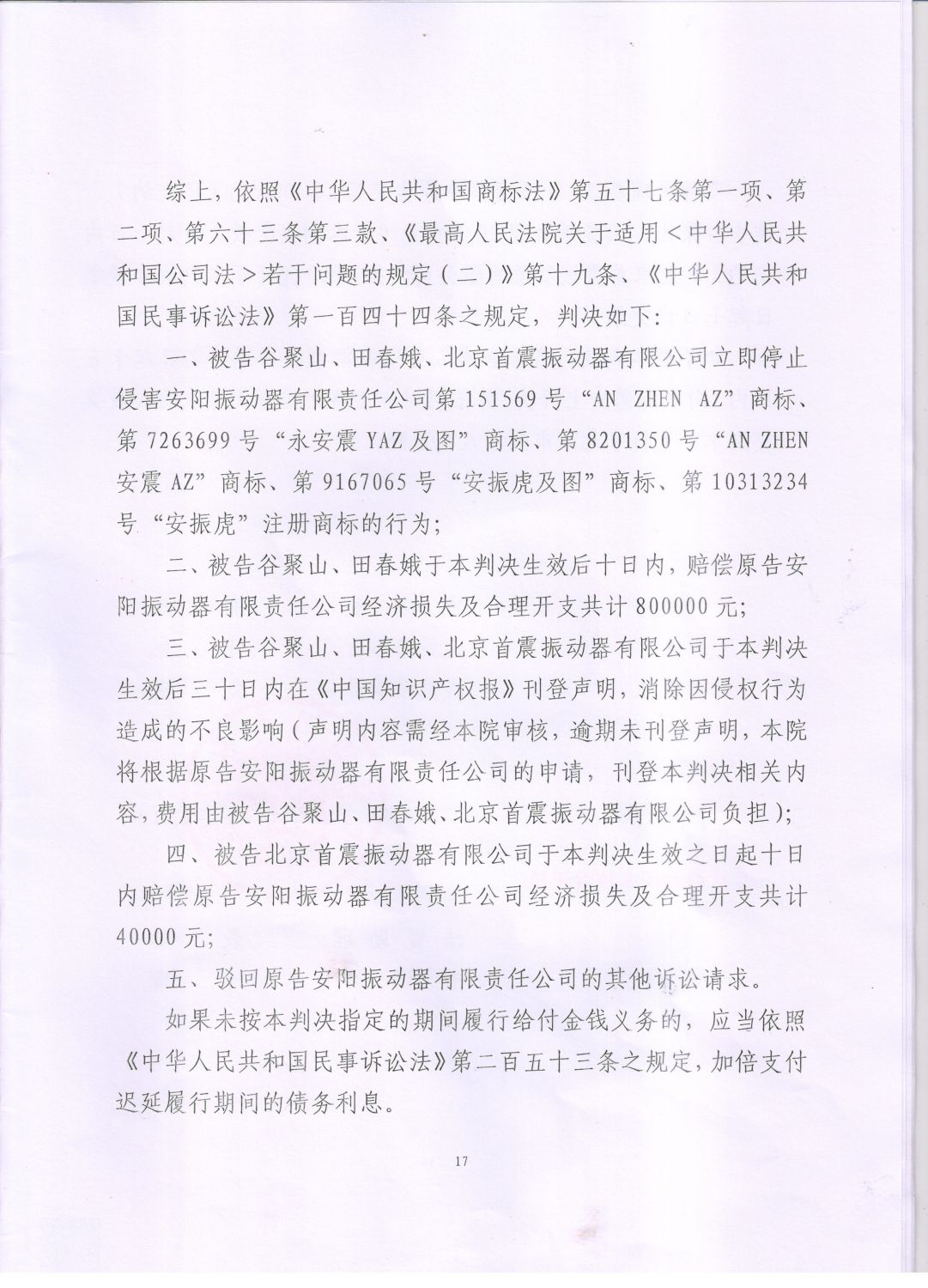 安陽振動器有限責(zé)任公司商標(biāo)維權(quán)案取得勝利