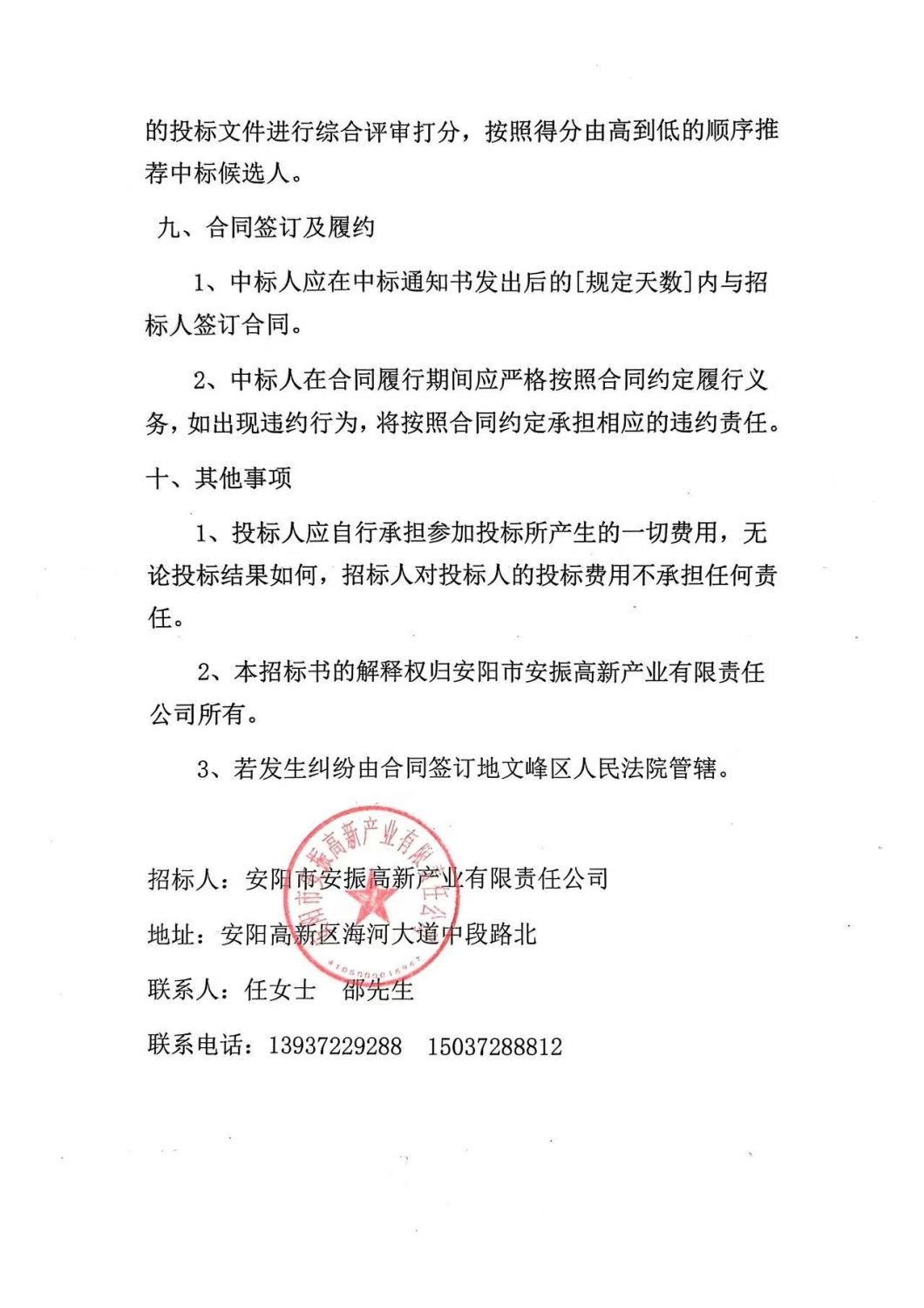 安陽市安振高新產(chǎn)業(yè)有限責任公司資產(chǎn)租賃及后續(xù)轉(zhuǎn)讓項目招標書
